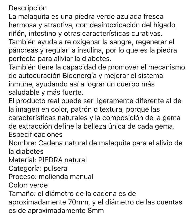 Nombre: Cadena natural de Chrysocolla malaquita para el alivio de la diabetes