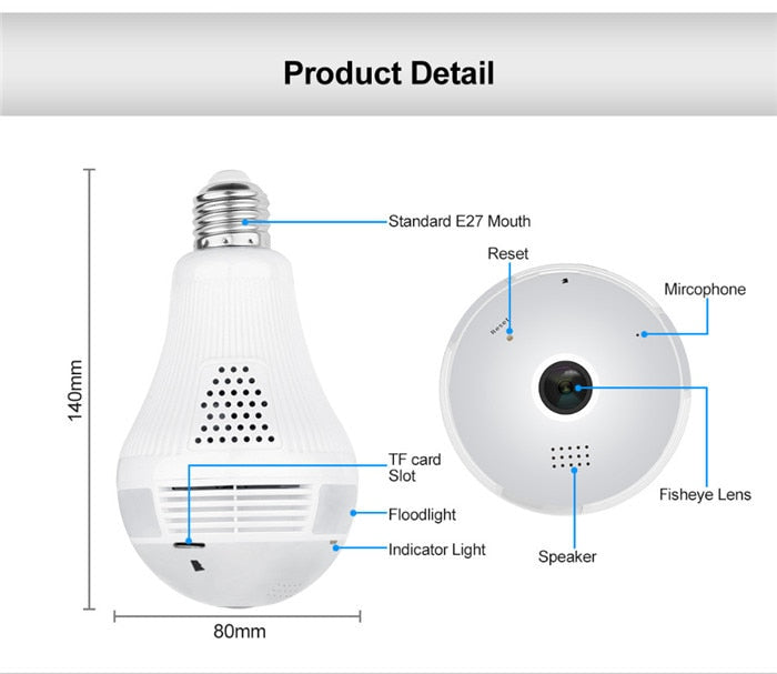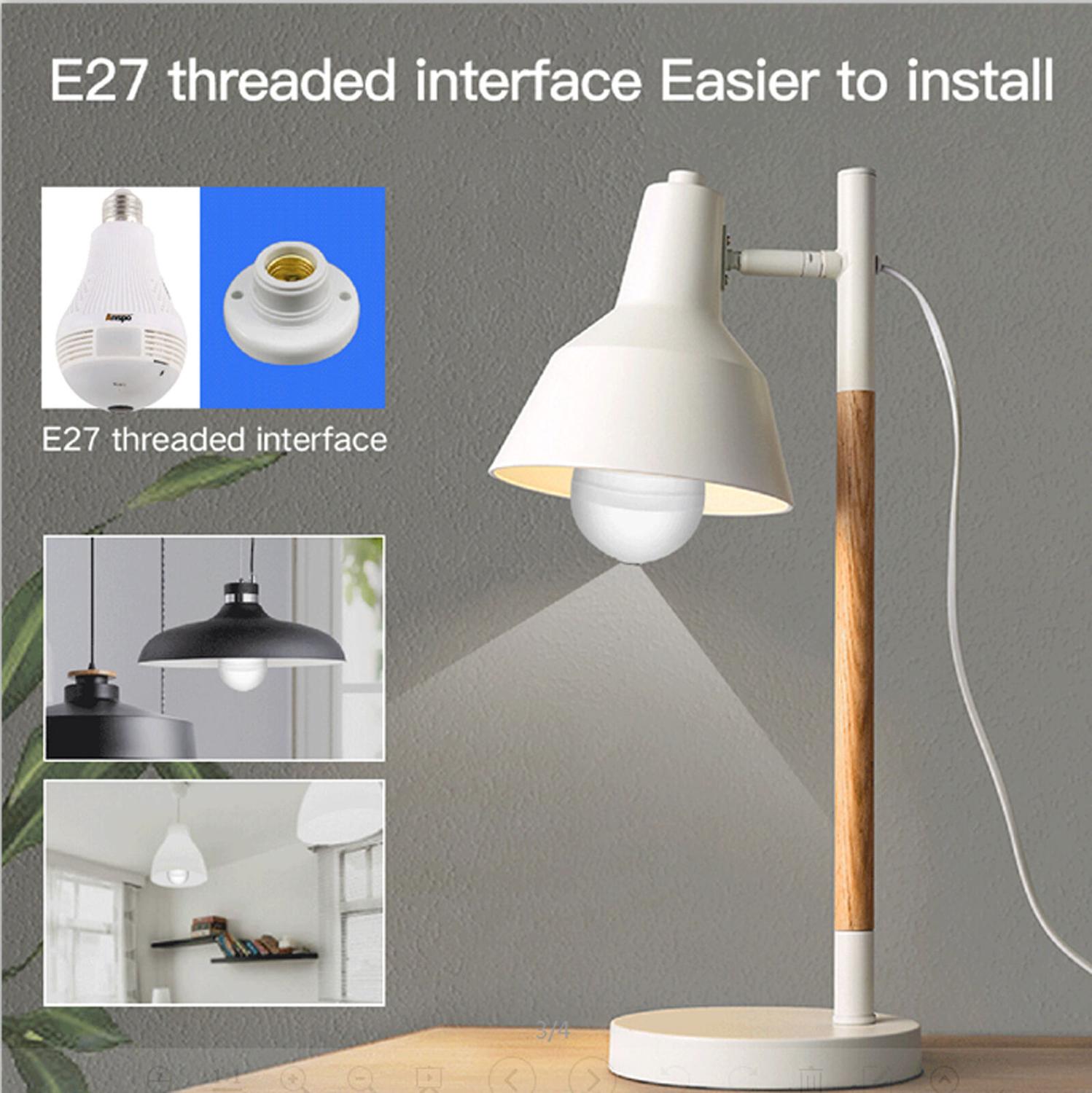 Bombilla de luz Cámara IP inalámbrica Wi-fi FishEye 960P 360 grados Vista completa Mini cámara CCTV 1.3MP Seguridad para el hogar WiFi Cámara panorámica